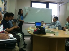 ”小李老师”と呼んでいます。13名の参加があり、大教室が満杯になりました。通訳担当は、学習歴3年程のZ先生。みるみる上達している”登り竜”です・・・。事前準備も、先生と通訳のコンビネーションもバッチリで、充実した1時間が過ぎました。
