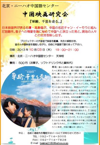 皆さん中国映画を堪能しながら、自由に中国語で語りあって下さい。