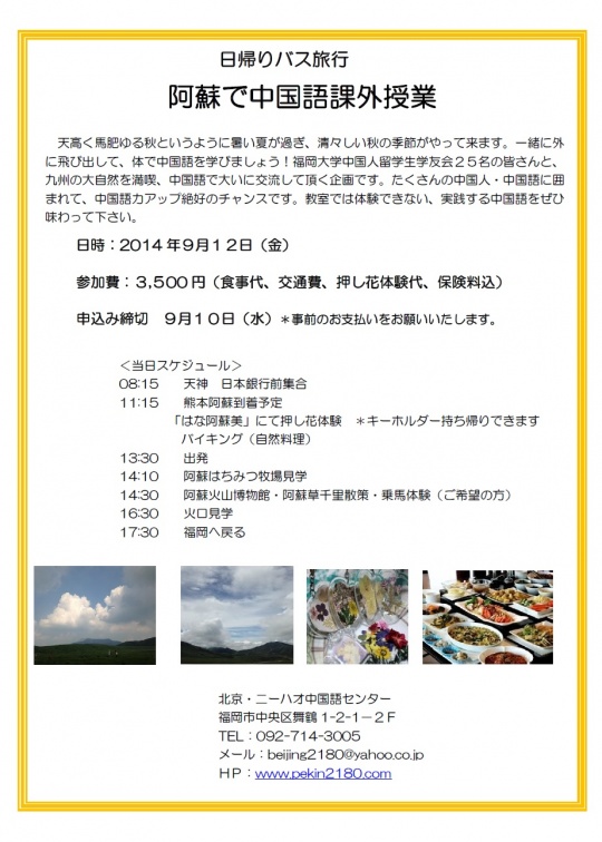 終了!阿蘇で中国語課外授業 福岡天神校