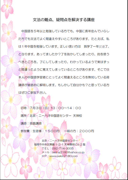 福岡市の北京・ニーハオ中国語センター福岡校のお知らせ