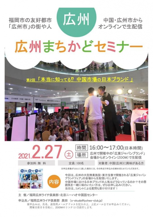 広州の「今」をお届けする「広州まちかどセミナー」第二弾を2月27日(日)に開催致します!