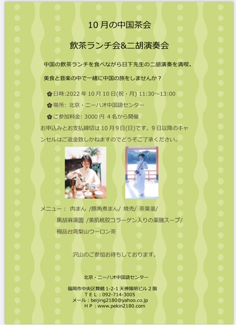 福岡天神校飲茶ランチ会&二胡演奏会 | 生徒様の最大限のご満足 を目標に (ameblo.jp)