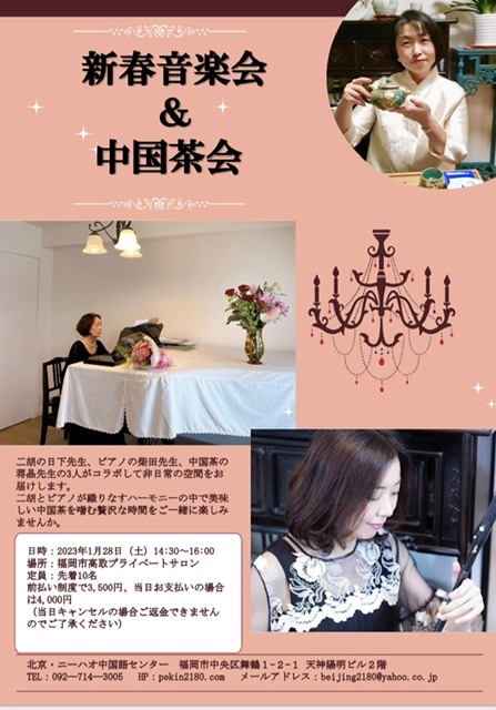 二胡の日下先生、ピアノの柴田先生、中国茶の