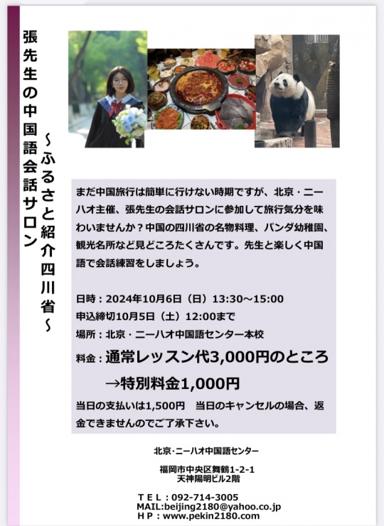 福岡市の北京・ニーハオ中国語センター福岡校のお知らせ