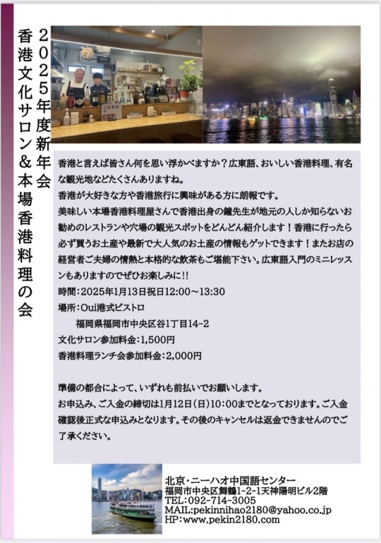 福岡市の北京・ニーハオ中国語センター福岡校のお知らせ