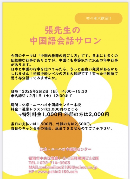 福岡市の北京・ニーハオ中国語センター福岡校のお知らせ